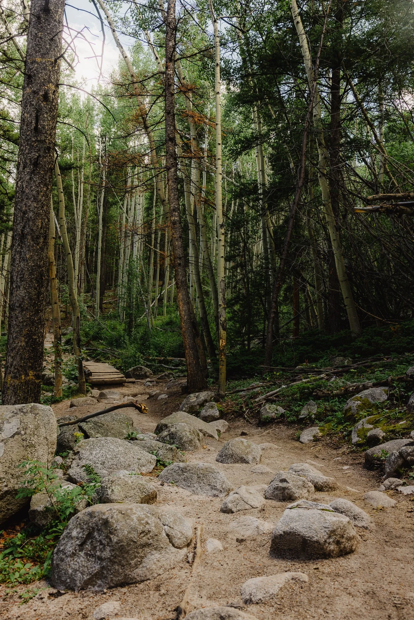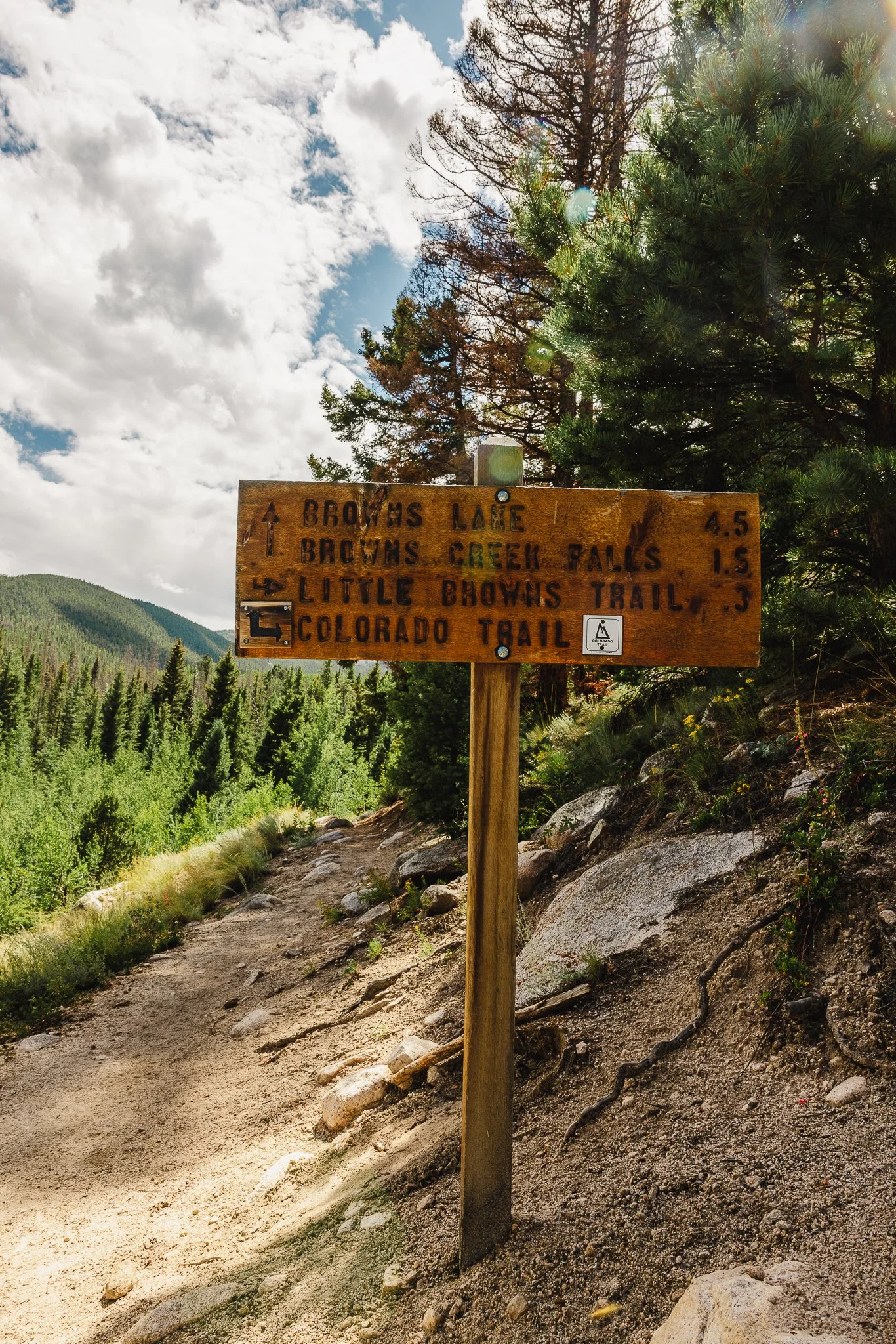 Once you Hike through the Aspens you’ll eventually reach the East Ridge Trailhead with a parking lot. This is really the start of the trailhead and you’ll start to walk through Alpine forests at this point. As you start hiking you’ll want to stay on the S. MT. Elbert TR. No 1481. You’ll also notice on the sign -> Lily Ponds. This is a cool little detour spot to take a break if needed. It’s a tiny pond with some man made areas to sit. I checked it out on the descent back down.