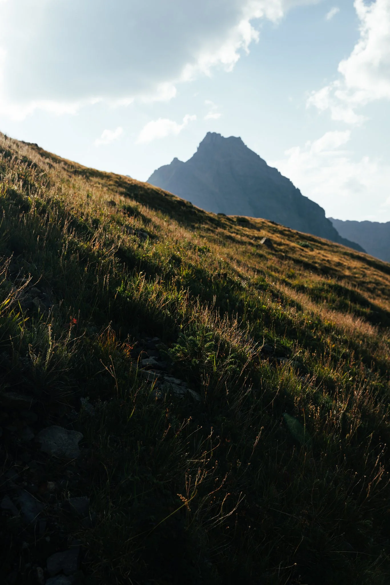 Once you’ve parked and grabbed your pack, you’ll notice signage for the start of the trail right by the bathroom. You’ll be entering the Mt Sneffels wilderness part of the Uncompahgre national forest. The first part of the hike will be through a wooded area with a good amount of elevation gain (about 2,300) before it starts to level out near the lower lake. As you get closer to camp there will be a waterfall on your left.